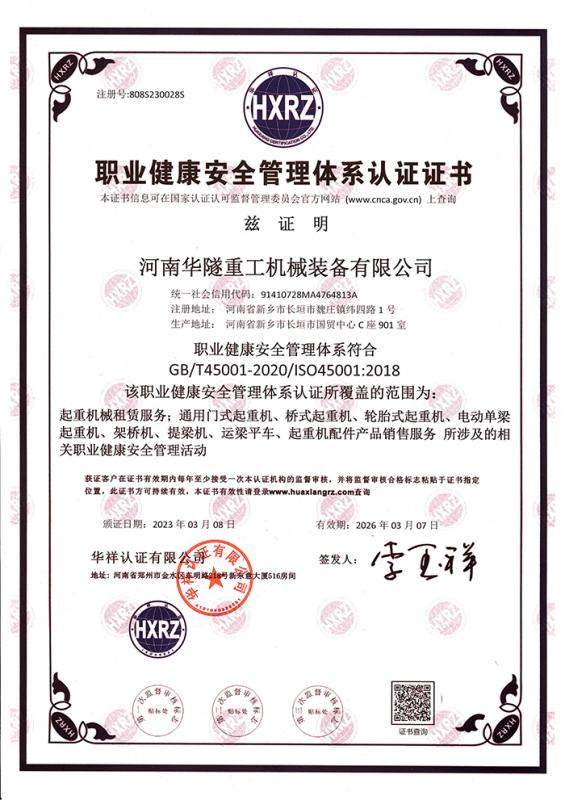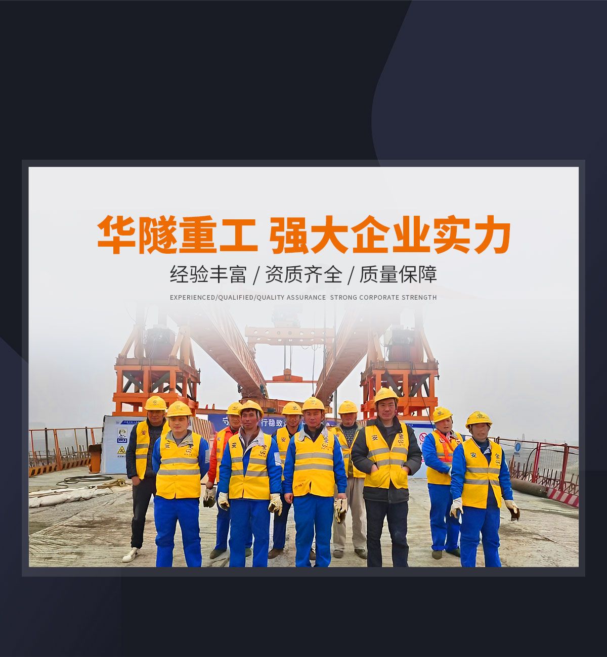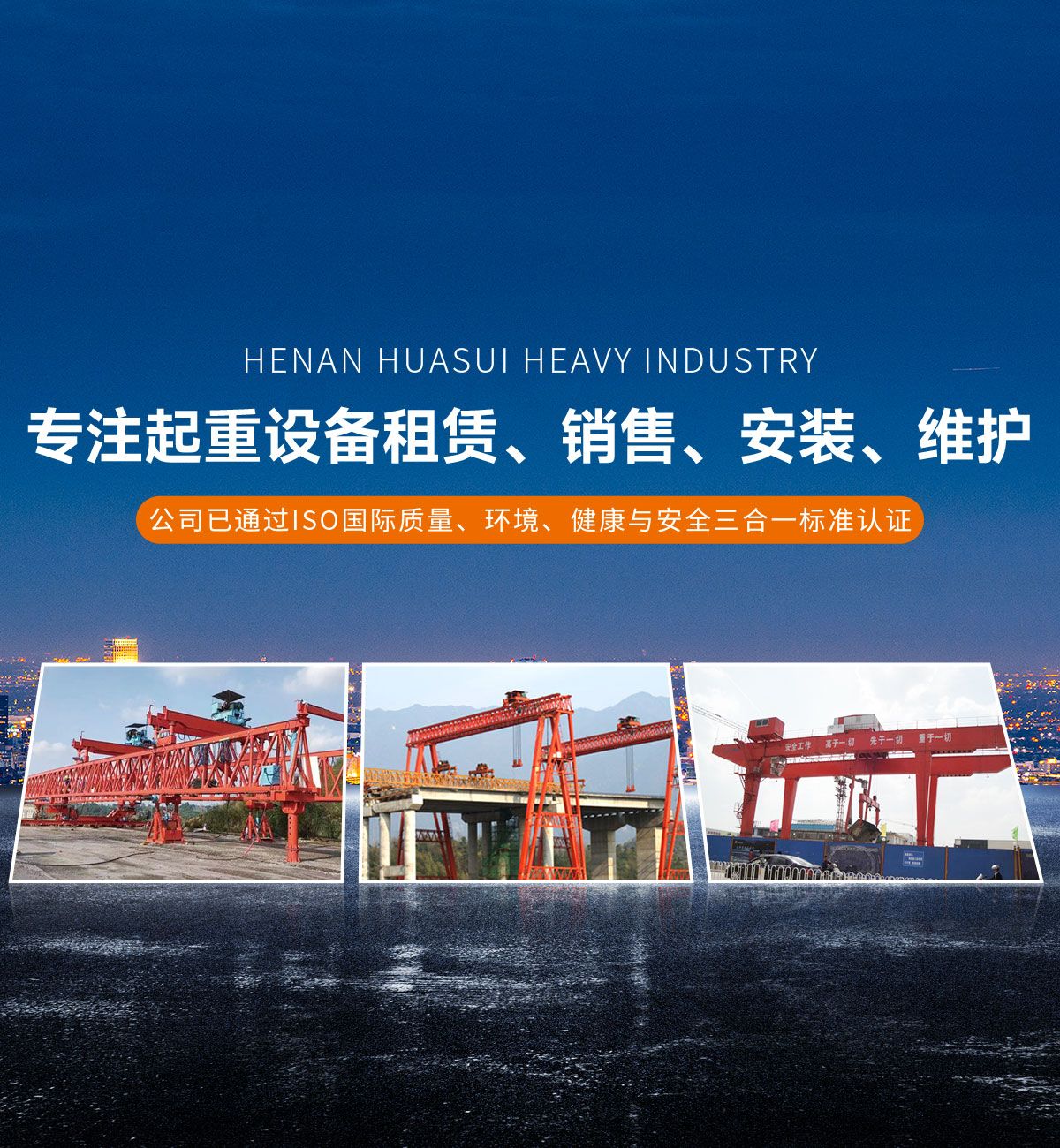 河南華隧重工機械裝備有限公司主要從事通用門式起重機、橋式起重機、電動單梁起重機,輪胎式起重機、架橋機、提梁機、遠梁平車、鋼絲繩電動萌蘆、卷揚機、起重配件制造、銷售:起重機械租賃、安裝和維修,起重設備園收,機械設備維修,鋼結構工程承包,橋梁工程及技術咨淘服務,銷售五金制品、機電設備:建設工程監理,建設工程設計,各類工程建設活動,建筑勞務分包,建筑物折除作業,施工作業,工程管理服務,土石方工程施工,裝如發運?! 」疽淹ㄟ^IS0國際質量、環境、健康與安全三合一標準認證,特種設備制造許可證和特種設備安裝改造維修許可證。擁有完熟的質量管理體系。嚴格的管理制度,強大的生產能力和先進的檢測手段,在保證產品質量的同時,也具備了極強的市場競爭力?! 」緢猿挚萍紕撔聻槔砟睿a品質量為核心,注重信譽,建立了減信可靠、快捷、思速。便利周到的售后服務網絡。  我們擁有的技術專家和技術服務隊伍為客戶提供充善的售前技術支持和全天候的售后服務體系,讓您無后顧之憂,享受一站式的超值服務。  “華隧重工,伴您成功“是華隧重工永遠的宗指,真被的希望與各界朋友攜手并進。共創輝準!